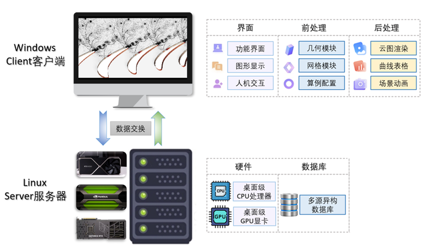 服务器端部署在Linux服务器,核心求解器需运行在GPU显卡上,数据库兼容多源异构数据,支持处理超大规模数据