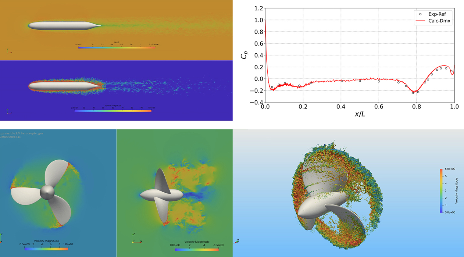 通过无模化求解获得船舶流动问题的高精度湍流信息,借助噪声预报模块精准预报水下航行器非定常水动力与流噪声特性;结合静态 / 动态 IBM 算法实现船舶复杂运动(如鱼雷发射、多体耦合)快速仿真,捕捉脉动压力的动态变化规律及涡结构演化过程。