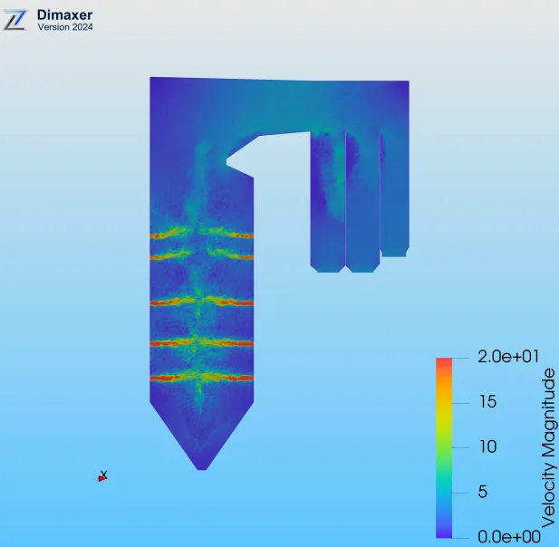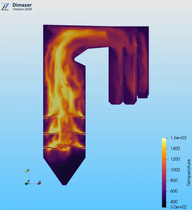 其中,可视化部分聚焦动态互动需求,在状态呈现、异常提醒等方面为运行人员提供了直观的视觉反馈;高解析度仿真算法提供了现有商业软件难以企及的模拟效率与解析精度,在偏烧优化控制、二次再热三烟道流量分配等实际运行问题上展现出明确的指导价值。 秩益科技凭借DIMAXER软件实现锅炉高精度仿真并精准指导了实际工程应用。针对超超临界二次再热锅炉,研发全异构GPU并行高解析仿真技术,实现三维可视化与精准验证,解决了锅炉燃烧组织优化、三烟道流量分配及局部蒸汽超温等问题,显著提效降耗,对燃煤电厂的运维规范化起到了积极促进作用,有益于整厂生产过程的稳定运行。该技术在实际运行的优化指导中已创造可观的经济效益,在电力生产行业具备广泛的应用推广价值。